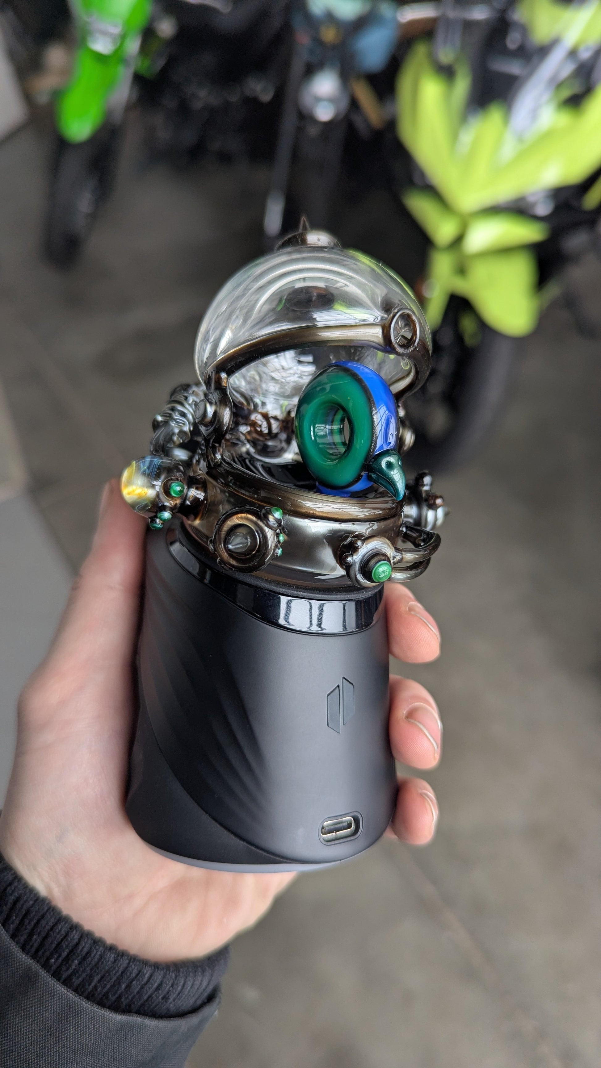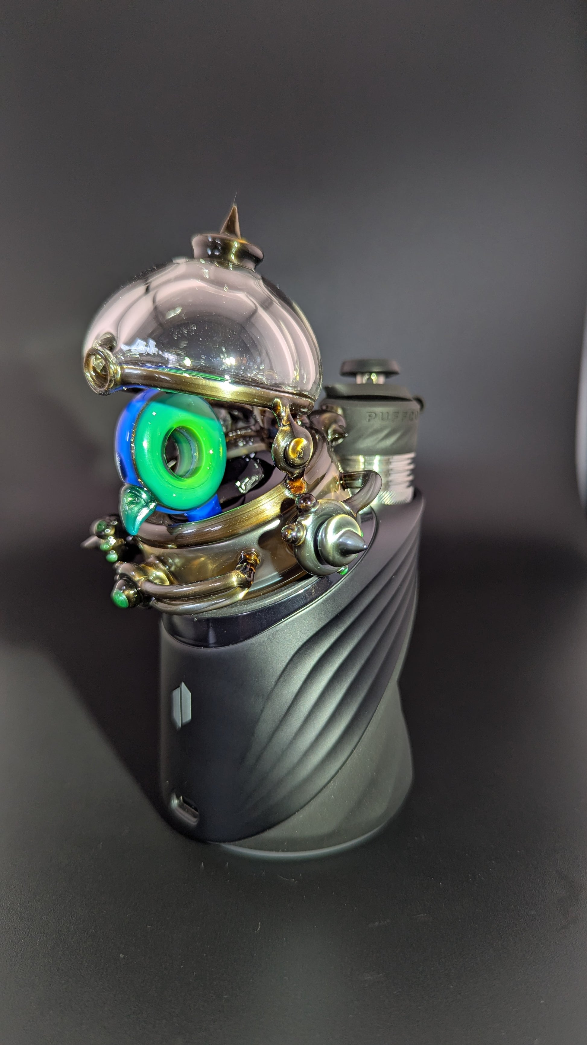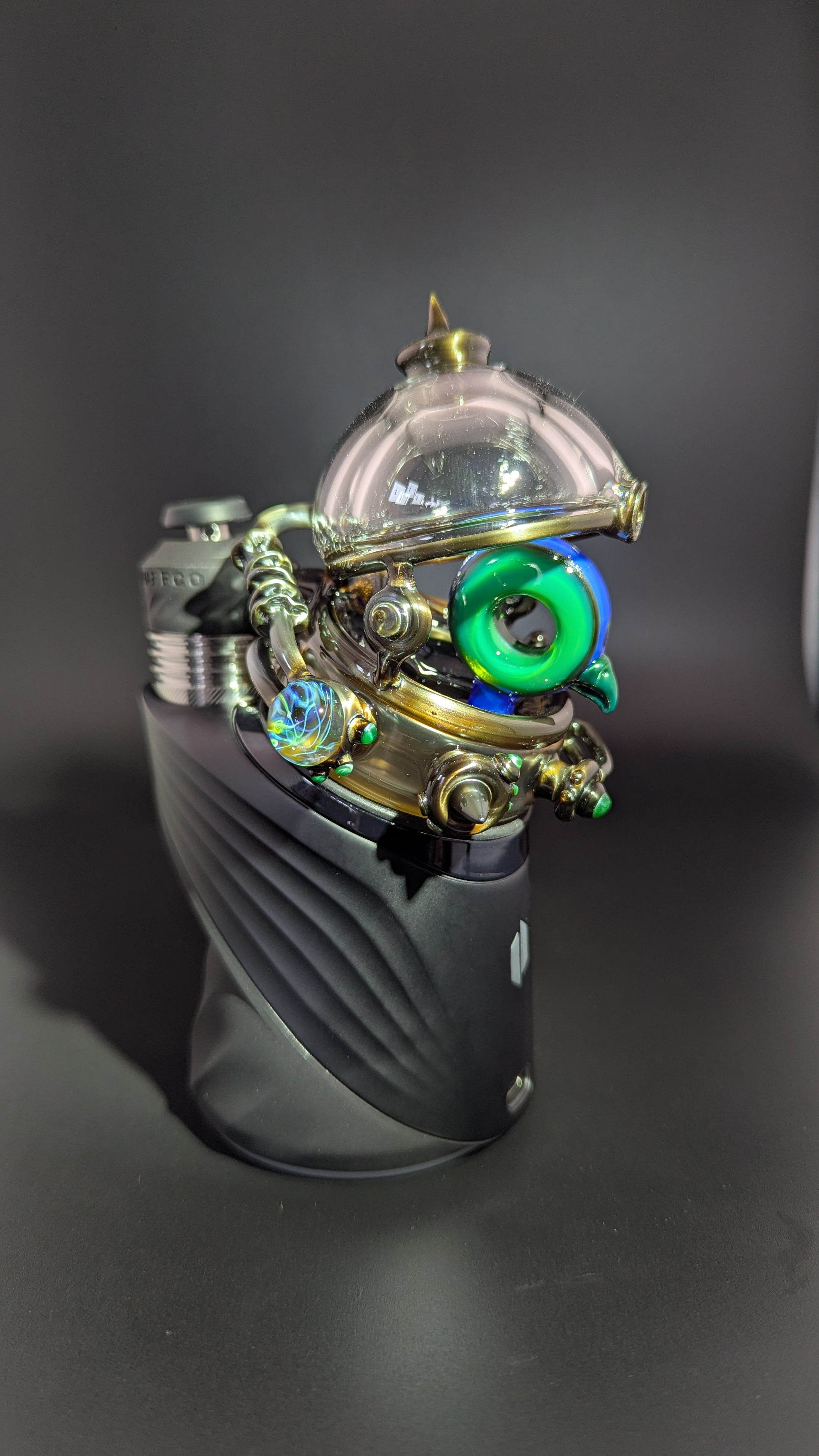 This is a Dry top for the Puffco Peak the attachment fits nice and snug and the piece does not interfere with the xl 3d chamber atomizer. Awesome electrum and chromium adornments to make your peak look like a little portal to me and calmbos world
